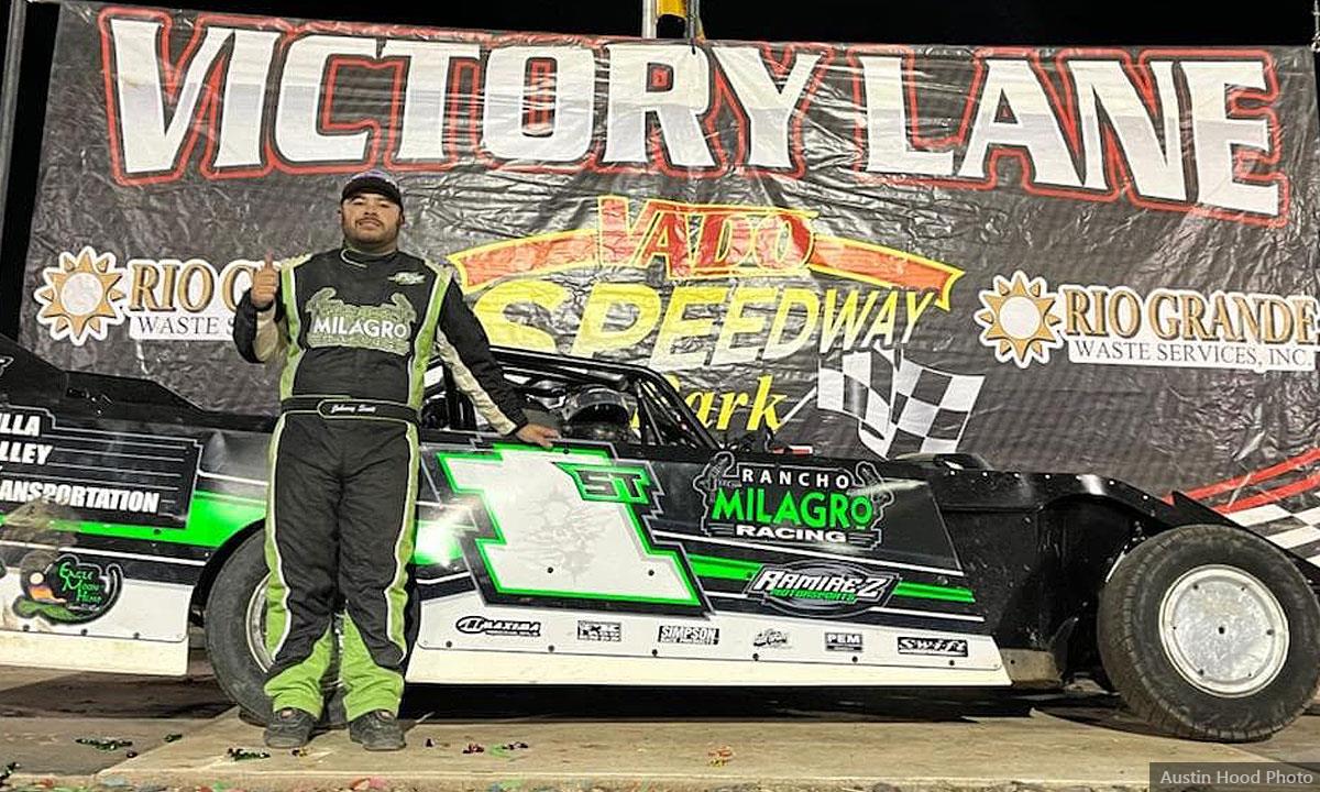 Johnny Scott made the short trip to Vado Speedway Park (Vado, N.M.) on Saturday afternoon to compete in his Rancho Milagro Racing No. 1st Modified. (Austin Hood photo)